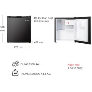 Tủ lạnh Casper 44 lít RO-45PB – Tủ lạnh mini có thiết kế nhỏ gọn tiện lợi, chỉ có một ngăn mát, dung tích 44 lít thích đáp ứng tốt nhu cầu lưu trữ thực phẩm cho 1 -2 người. Sở hữu bộ lọc than khử mùi, điều khiển núm vặn dễ sử dụng, chiếc tủ lạnh là sự lựa chọn phù hợp cho các bạn sinh viên, các không gian phòng nhỏ như phòng trọ, nhà nghỉ, kí túc xá,…