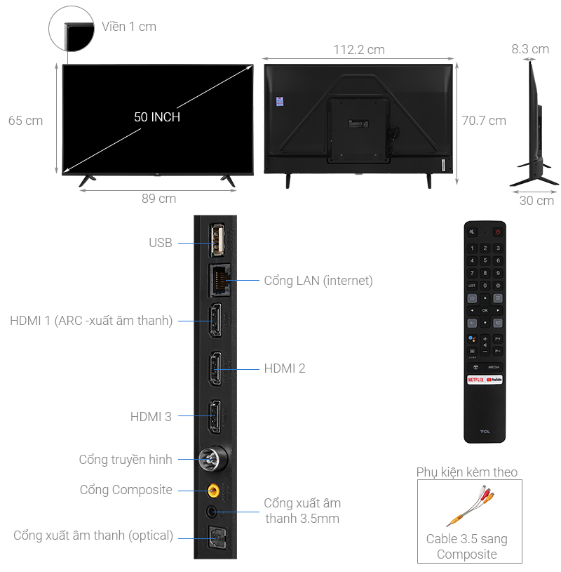 Tivi TCL 50 inch sẽ làm cho không gian nơi bạn trưng bày tivi trở nên sang trọng hơn, phù hợp trưng bày ở phòng khách, phòng ngủ,…